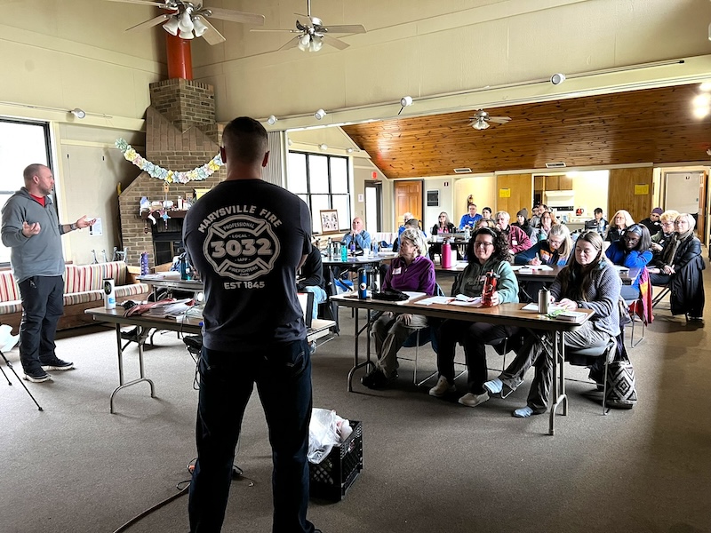 This past month four Miami Group Outings Leaders participated in a two-day Wilderness First Aid course at Camp Stony Brook in Waynesville, Ohio. Organized by Summit Trek and Travel and Outdoor Adventure Connection, the SOLO training prepared students to handle outdoor emergencies, focusing on skills of: response and assessment, musculoskeletal injuries, environmental emergencies, soft tissue injuries, and medical emergencies. A total of 25 participants from all over the Midwest took part in the training conducted by experienced first responders.